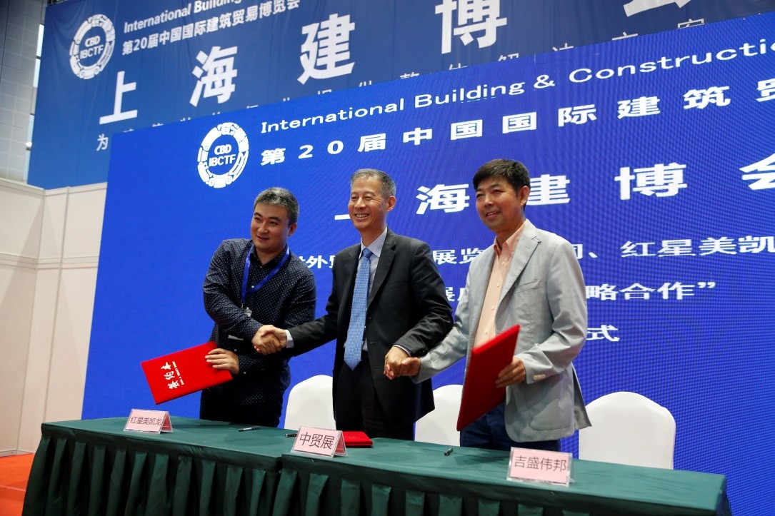 展覽開(kāi)幕發(fā)布會(huì)還舉行了中國(guó)對(duì)外貿(mào)易廣州展覽總公司與紅星美凱龍、吉盛偉邦、浙江省門(mén)業(yè)協(xié)會(huì)等相關(guān)單位的合作簽約儀式。