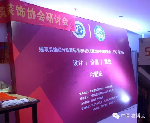 1月5日,由中國建筑裝飾協(xié)會、中國建博會主辦,合肥市建筑裝飾協(xié)會、設計委員會承辦,高端設計師聯(lián)盟協(xié)辦的"建筑裝飾設計取費標準研討會暨2016中國建博會(上海)推介會"在合肥市港匯廣場A座成功舉行。活動以"設計|價值|重生"為主題,現(xiàn)場集眾多設計精英、家居企業(yè)高層、協(xié)會領導于一堂,共同探討安徽建筑裝飾行業(yè)的未來發(fā)展,推動建筑裝飾設計取費標準進程。