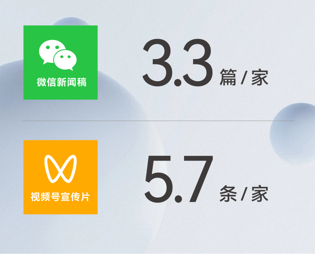 在虹橋的72小時(shí),高定參展品牌共發(fā)布70篇微信新聞稿、86條視頻號(hào)宣傳片,平均每家3.3篇和5.7條。其中A8空間發(fā)布視頻20條,堪稱高定界“勞?!?!此外,圖森的新聞稿單篇閱讀量達(dá)7973,客來?!じ镂镆曨l號(hào)單條點(diǎn)贊數(shù)達(dá)1140,名副其實(shí)的高定界宣傳“課代表”!