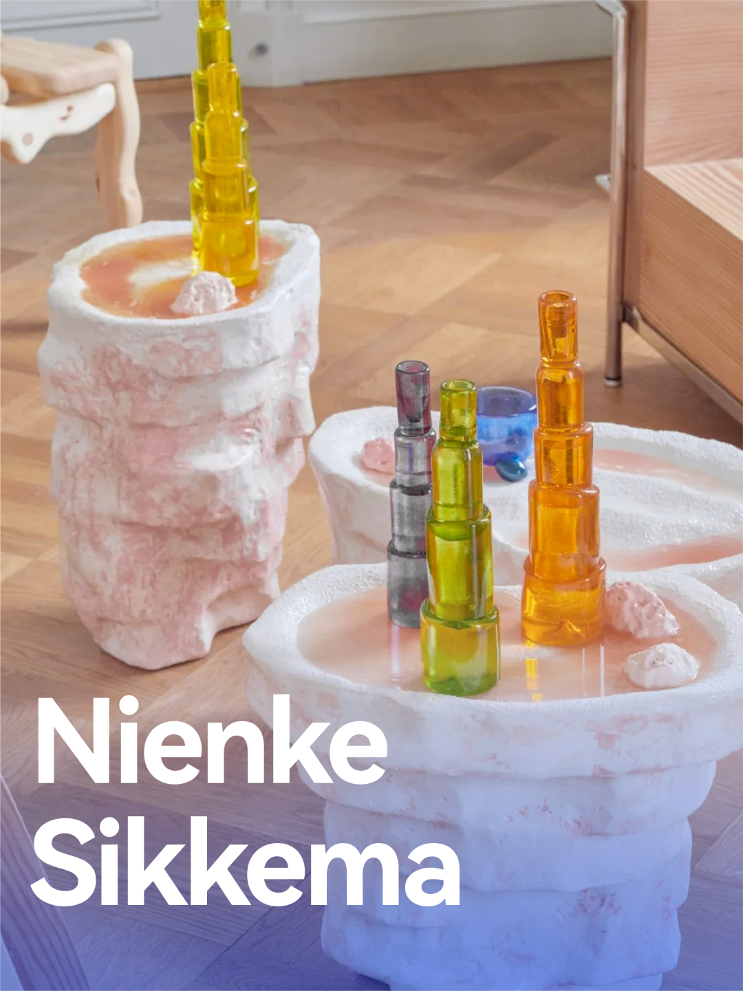 設計師Kajsa Melchior的作品跨越了設計和雕塑的邊界,其作品通過壓力來塑造沙子,創(chuàng)造性地模仿自然侵蝕過程;Nienke Sikkema的玻璃雕塑作品仿佛來自外星系的粉紅巖層,沒有過多裝飾卻令人體味到藝術的感染力;Laurids Gallee的鑲嵌作品融入了色彩繽紛的印花,為沉悶的空間注入非凡想象力。