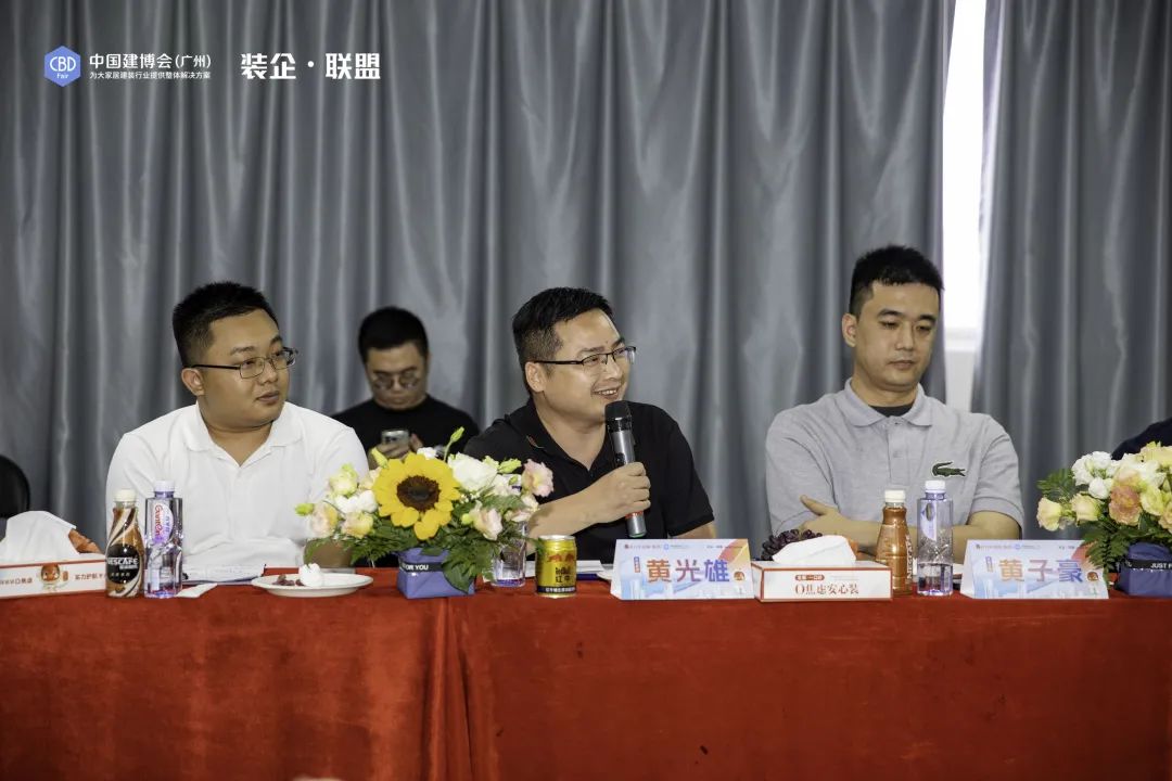 到訪的參展企業(yè)代表針對(duì)品牌自身發(fā)展及對(duì)裝企渠道的布局提出了許多問題和想法,黃小飛董事長(zhǎng)耐心而詳細(xì)地回答了參展企業(yè)代表們的問題,同時(shí)分享了他對(duì)家裝市場(chǎng)以及定制、門窗、智能、軟體等產(chǎn)業(yè)的判斷與預(yù)期。