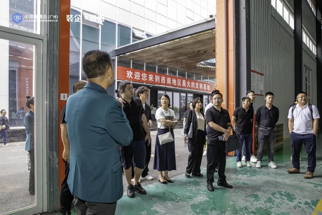 ▲“裝企?聯(lián)盟”參訪團(tuán)隊(duì)在原先森全屋定制工廠現(xiàn)場(chǎng)
