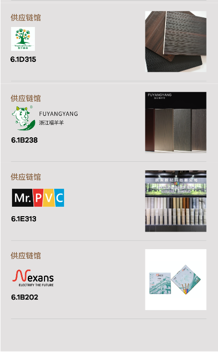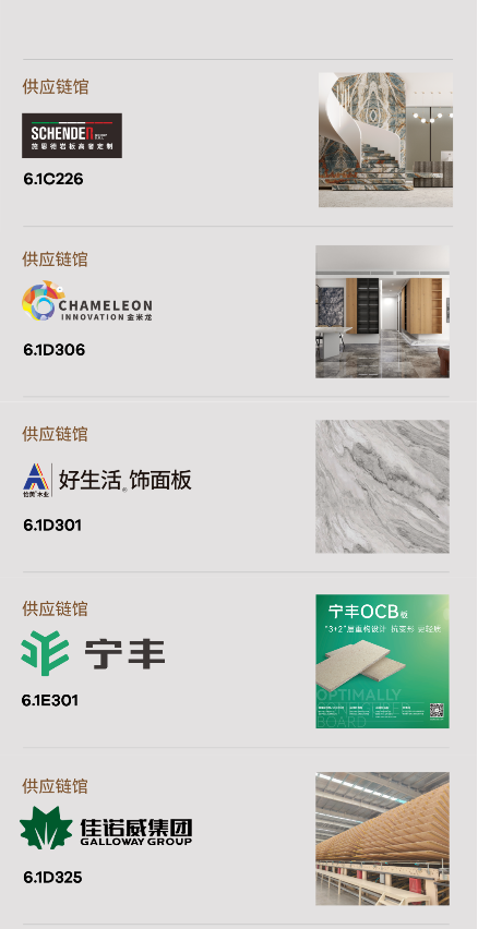 2024中國建博會(huì)(上海)精心打造6.1號高端選材中心、供應(yīng)鏈館,展出面積達(dá)3萬平方米,囊括高端涂料、集成頂墻、高端巖板、全屋配套、高端板材和高端五金等題材。其中,供應(yīng)鏈展館囊括施恩德、金米龍、怡黃、寧豐、梵品、亦木良品、福羊羊、玉輝、耀東華、茂友、維斯特、景河、居安、諾亞、佳諾威、德萬家、百源、壯象、寶源、香緹半島、河馬等供應(yīng)鏈上下游品牌,共同打造高端家居風(fēng)向標(biāo)。